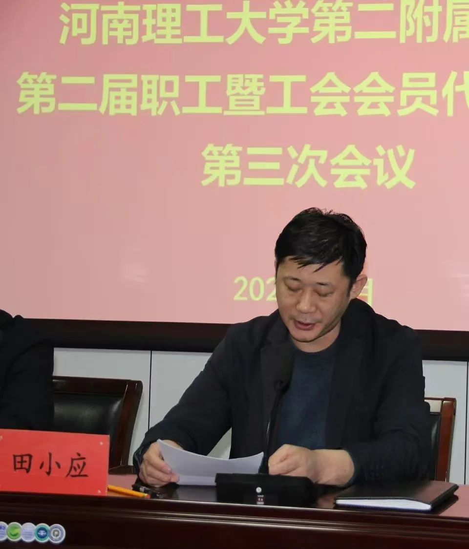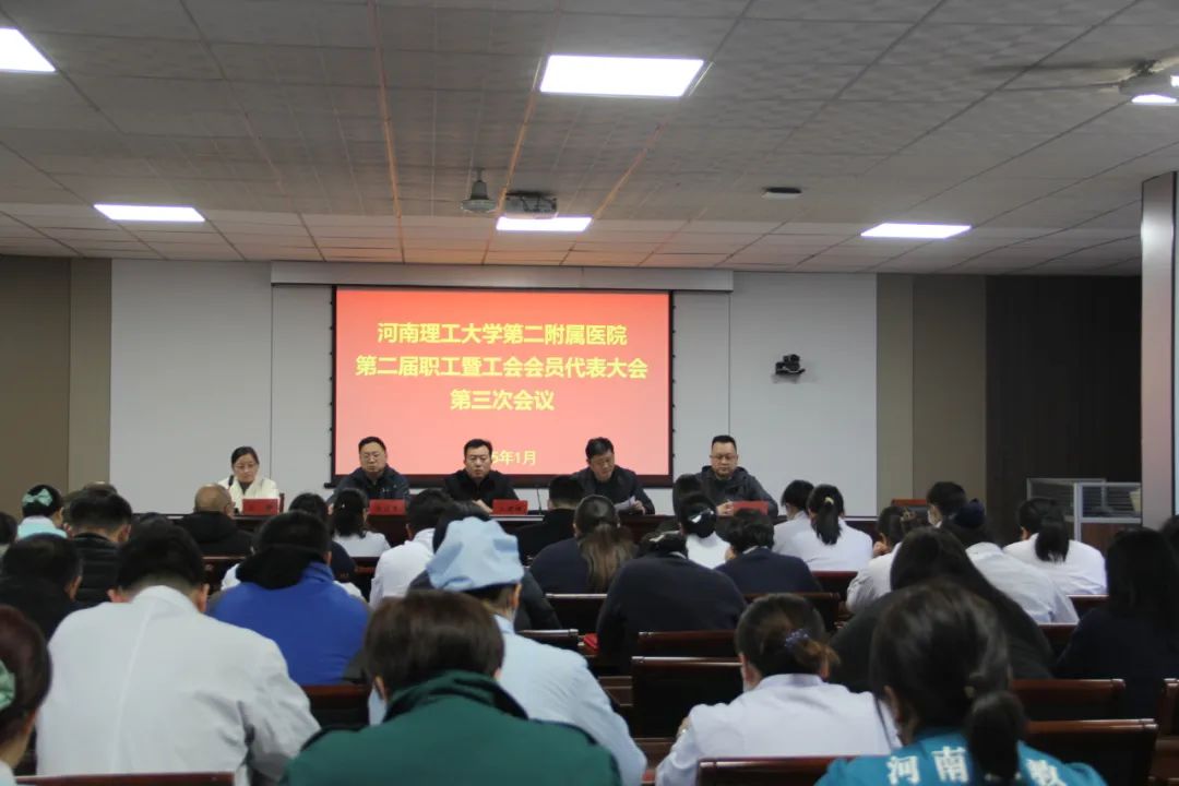 2025年1月23日下午,河南理工大學(xué)第二附屬醫(yī)院門診四樓會(huì)議室召開二〇二四年度總結(jié)表彰大會(huì)和第二屆職工暨工會(huì)會(huì)員代表大會(huì)第三次會(huì)議。院領(lǐng)導(dǎo)班子成員出席大會(huì),受到表彰的先進(jìn)集體代表、個(gè)人、中干、職工代表參會(huì)。會(huì)議由副院長、工會(huì)主席許靜主持。